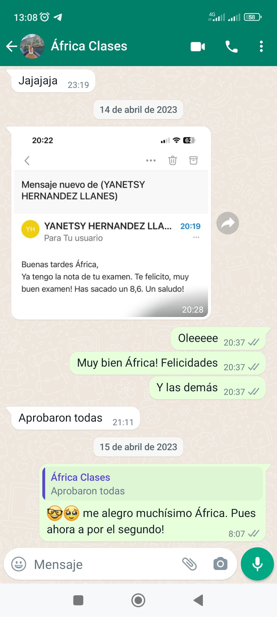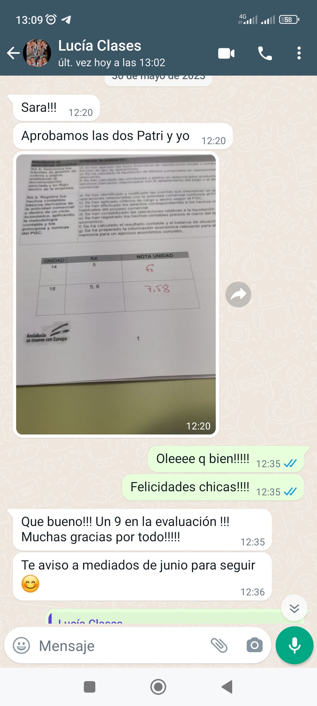 Tutorización y apoyo en grupo de WhatsApp